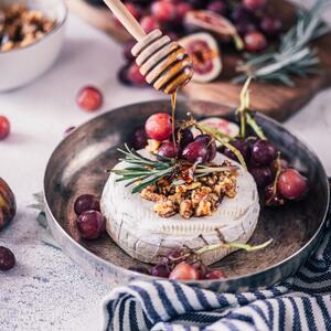 On top of it, add some almonds and hazelnuts, and place the cheese in the oven for 35 minutes at 350° F.