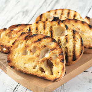 Why not savor the baked brie with some toasted slices of baguette? For that, preheat the oven to 350°F and place the cut baguette on a tray. Pour 1 tablespoon of olive oil on top and drizzle with some minced garlic. Bake for around 10 minutes, until crisp and browned.
