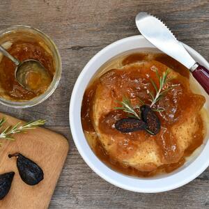 Preheat the oven to 350° F. Mix the jam and the nuts, and then pour all the ingredients on the brie cheese. Bake it for around 8 minutes, not more.