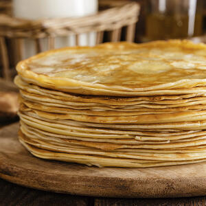 Thin pancakes are great for any meal. Serve with salt or sweet fi...