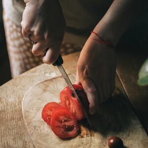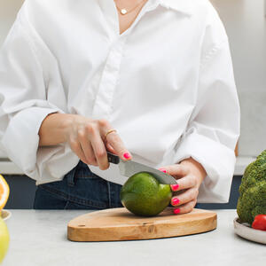 Cut the onion, avocado and tomatoes into thin slices. This step will facilitate blending and make the consistency creamier.