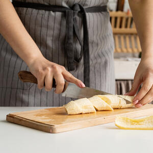 Grab a ripe, fresh banana. Use a slightly green banana if you prefer a less sweet flavour. Bananas should be peeled and cut into small pieces.