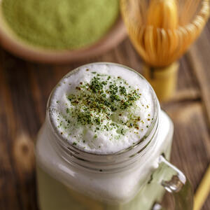 For the matcha smoothie, the decoration can be some mint leaves or some strawberry slices. It all depends on your preferences.