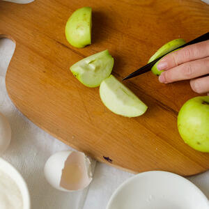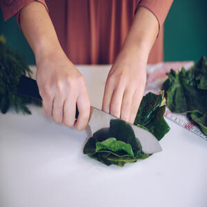 One of the most important things in this recipe is to cut the ingredients properly. Take an apple and cut it into small slices, then peel the banana and cut it into thin slices. The next step is to chop the spinach leaves. These steps will make the mixing process easier, and the smoothie will not have any chunks.