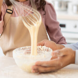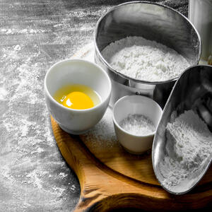 Prepare all the ingredients that you will use during cooking. Take the eggs out of the refrigerator first. Their temperature should not exceed room temperature. Otherwise, pancakes will not turn out tender and fluffy.