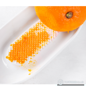 All you need is a grater with small holes. Simply take the orange and grate it the same way you would grate cheese. Make sure to rotate the orange as you do so and avoid getting too much of the white part of the peel, which has a more bitter taste and less flavor.