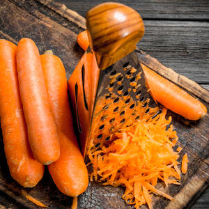 Now it's time to prepare the frying. Fry vegetables in a pan. These are onions, carrots and bell peppers. Finally, add the garlic and stir. Cooking takes about 5 min.