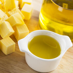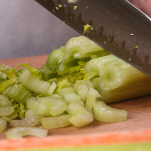 Take a deep container. Add the vegetables indicated in the recipe. Add two kinds of oil. Stir the mixture thoroughly.