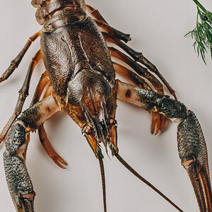 Crawfish has a dark green shell, closer to brown. It must be without damage.