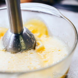 Wash and remove the skin from the bananas. Mash them with a fork in a bowl and then crack the eggs. Add 2-3 tablespoons of yogurt and honey, and mix everything with a blender. The mixture must be homogenous.