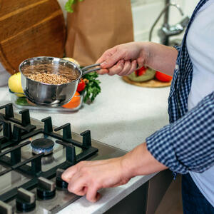 Before boiling the farro, it has to be soaked in water for around 12 hours. After those hours pass, it is time to cook it. Take a large saucepan, add 3 cups of water with 1 teaspoon of salt, then 2 cups of farro. Place the pan on the stove and boil it on average heat for around 30 minutes. When finished, drain the access water and leave it to cool for 10 minutes.