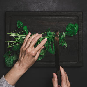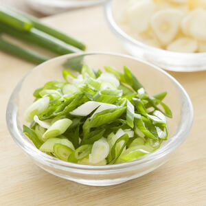 Thinly slice the shallot, feta cheese, and red pepper. Also, chop the mint leaves so that the salad will have a slightly minty taste.