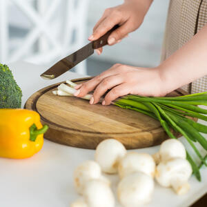 The canned beans have to be washed and rinsed throughly. Furthermore, chop the green onion into small pieces.