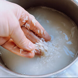 Rinse the rice and place it in a medium-sized saucepan along with 2 cups of water and 1 teaspoon of salt. Heat the mixture over high heat until it reaches boiling, then lower the heat to medium-low. Cover the saucepan with a lid and let it cook for 20 minutes, until the water has been completely absorbed.