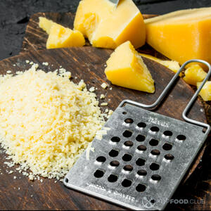 Take the parmesan cheese and cut it in half. Use a grater to shred it. After that, place the grated cheese in a separate small bowl. Season the parmesan with a pinch of black pepper to bring out the flavor.