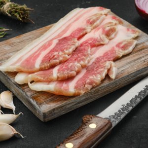 Bacon does not have to be deep red after cooking. Its color depends on the method of cooking and the presence of color and flavor stabilizers in the bacon (because not all manufacturers simply salt it, many add additives to improve appearance and extend the shelf life).