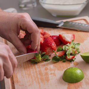 Вместо свежей клубники можно также использовать и замороженную. Просто достаньте её из морозильной камеры примерно за час до готовки и оставьте при комнатной температуре. Когда клубника полностью разморозится – слейте лишнюю жидкость.
