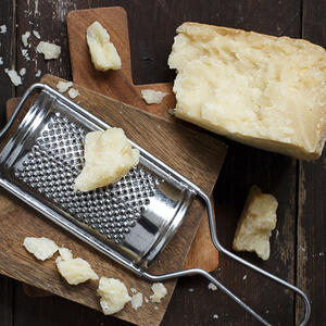 Макароны порционно разложите по тарелкам и заправьте клубничным соусом. Сверху натрите немного сыра Пармезан. В таком виде подавайте блюдо к столу. Приятного аппетита!