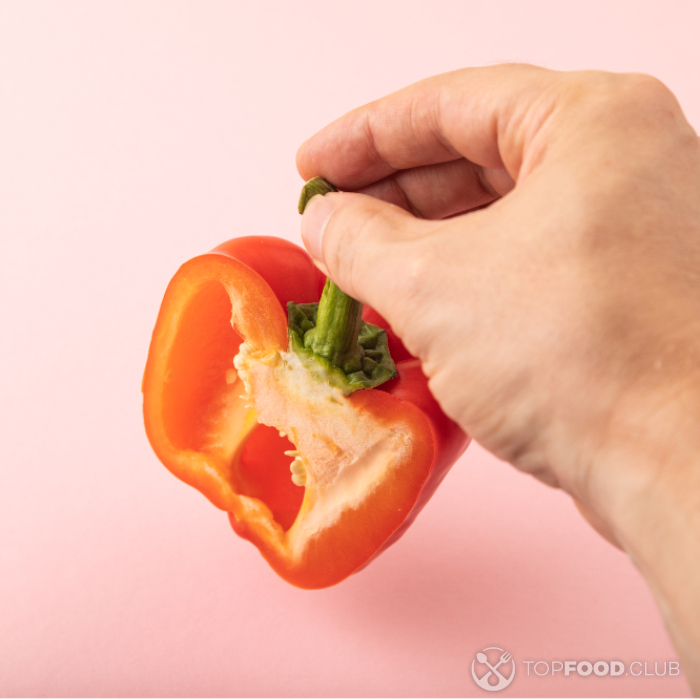 Моем язык с небольшим количеством теплой воды и кладем в пароварку (миску для варки круп). Моем сладкий перец и чистим его от семечек.