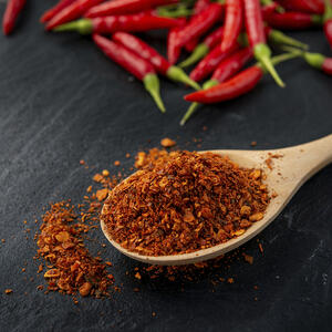 Затем добавьте нарезанный лук, красный острый перец и соль по вкусу. Всё перемешайте и готовьте ещё около 5 минут.